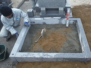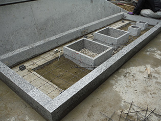 - 一度建ててしまうと見えなくなってしまう基礎も、お墓づくりにおいて重要なポイントのひとつです。「こだわりの基礎」が大切なお墓を支えます。
