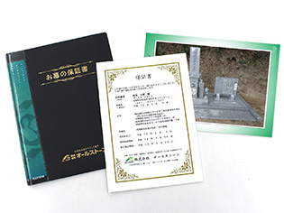 アフターサービスもお任せ下さい。2015年度よりオールストーンでは独自のシステムを開発し、お客様と打合せした内容をすべてデータ保管させて頂いております。お客様には、打合せした契約書・領収書・図面・施工写真・文字原稿などの内容をメモリアルブックとして作成し保管して頂きます。万が一紛失してもデータは保管しておりますのでご安心ください。またお墓の点検や会員様限定のサービスも万全です。オールストーンではお墓が完成してからがお客様との本当のお付き合いと考えております。建立後もしっかりと対応させて頂きます。