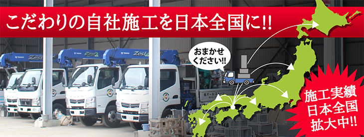 オールストーンのこだわり施工オールストーンでは、下請け業者等を使わず、自社の石職人が責任を持って現地にて施工いたします。